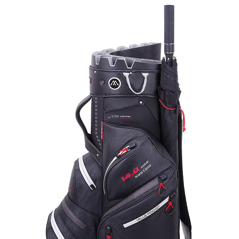 The new Silencio 2 from BIG MAX is lightweight and water-resistant thanks to the Dri Lite technology. With the 14-way Silencio Divider, clubs are held in place, eliminating all knocking together of clubs and the associated noise. The organizer accommodates oversized putter grips, while the pocket layout allows for optimal organization of valuables. Water-resistant Dri Lite technology with waterproof zippers keeps gear dry finishing off this innovative, reliable, and well-thought-out golf bag.